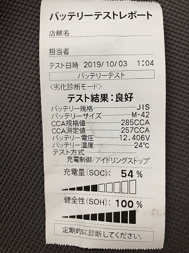 バッテリーが上がってしまった! トピックス 2019年10月21日 0 昨日は休日でミライース でゴルフの練習に出かけようと、いつも通りエンジンをかけたとき、なんと急にバッテリーが上がってしまいました。 今年1月の車検の際に、バッテリー交換したばかり。。 あまりにも早く、まさかの出来事でショックも大きかったです。。 バッテリーが上がった時のことを全く想定していなかったので、急きょ近所のホームセンターに ブースターケーブルを購入しに行きました。 カインズホームで¥1280で売ってました。 ファミリーカーのステップワゴンにブースターケーブルをつないで早速作業開始。 まずは、 ①バッテリーが上がったミライースのプラス端子に赤色のケーブルをつなぎます。 ②救援車であるステップワゴンのプラス端子に赤色のケーブルのもう片方をつなぎます。 ③救援車であるステップワゴンのマイナス端子に黒色のケーブルをつなぎます。 ④バッテリーが上がったミライースのマイナス端子に黒色ののもう片方をつなぎます。 ①から④のつなぐ手順は、ケーブルに表示タグがついているので、分かりやすい! つなぎ終わると、救援車のステップワゴンのエンジンをかけます。 しばらくアイドリングして、ミライースのバッテリーに電気を送り込みます。 数分して、ミライースのエンジンをかけてみると、元気よくエンジンがかかってくれました。 もしバッテリー自体が弱っているようなことがあれば、交換の必要もあるかと思い、 状態を判定してもらうために、整備工場へ。 測定結果は、バッテリーの能力は100% 充電量が54% でした。 1月の交換したばかりなので、さすがに交換するような状態ではなく、単純に充電量が減っていたのが原因のようでした。 通勤で片道20分、10km程度の使用では、十分に充電されないというこなんですね。。。。 十分な充電量を保ち、バッテリー上がりを防ぐには、エコアイドルをオフにしておおいた方が良いと整備の方に指摘されました。 アイドリングストップ機能を使わなければ、燃費が悪くなりますよね。 でも、十分に充電されずにバッテリーが上がるのも困るし、短い期間でバッテリー交換するのも困る。 ミライースのアイドリングストップのバッテリーは通常のものの2倍くらいの値段だそうですね。 アイドリングがストップして、ガソリンの節約になるかもしれませんが、高価なバッテリーを数年で交換していくのは、いかがなものかと感じました。 走行距離が短い使用には向いていない車なのかもしれません。。。。 PR